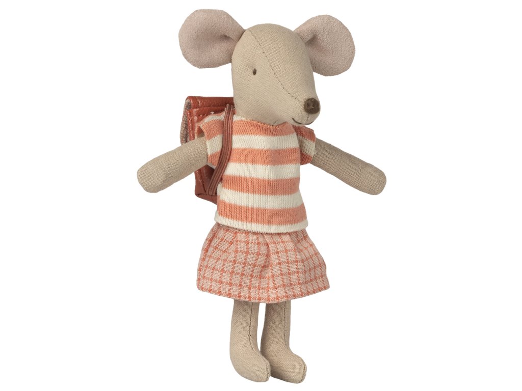 Maileg myška školačka na tříkolku/koloběžku s magnety v packách
